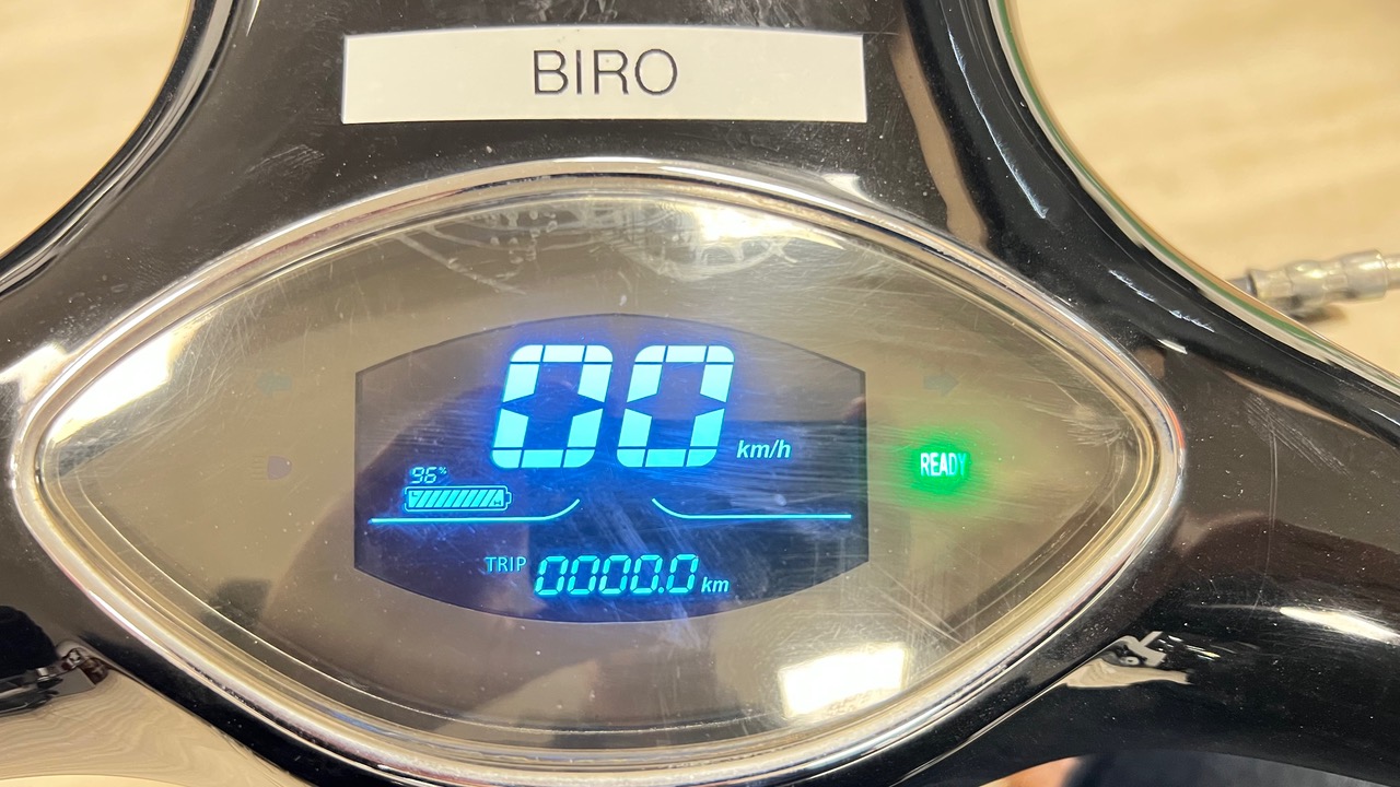 – Niveau de charge précis indiqué en % sur le compteur (BMS communiquant) + fonction TRIP avec bouton de droite sur le guidon